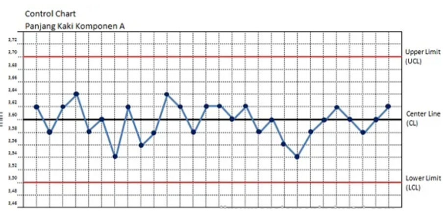 Control chart digunakan untuk memantau stabilitas proses dari waktu ke waktu. Peta kendali ini dapat membantu melihat pola perubahan yang dapat memengaruhi stabilitas proses menuju peningkatan produktivitas.